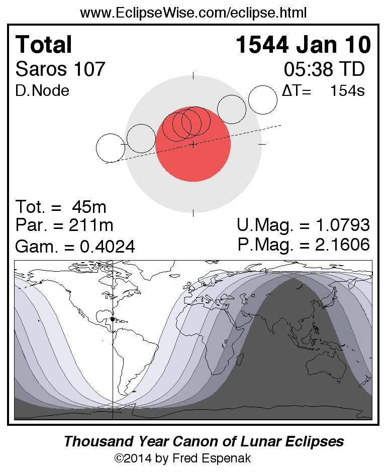 Total Lunar Eclipse of 1544 Jan 10