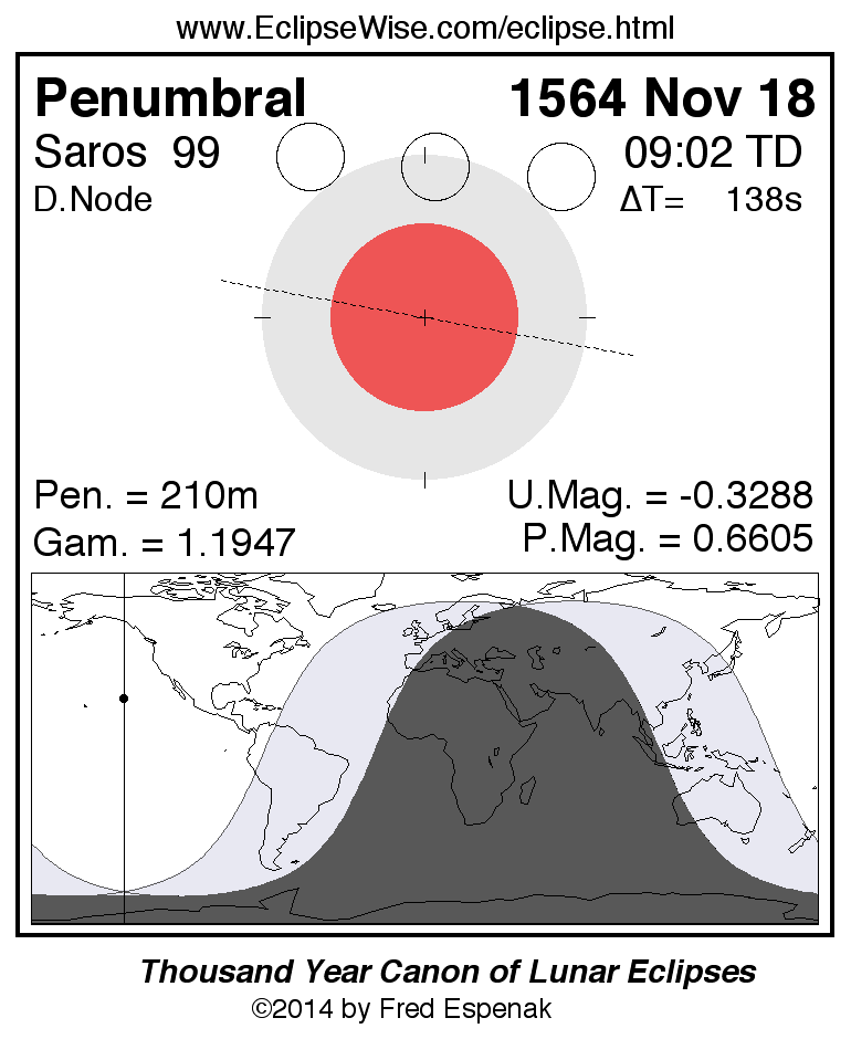 Penumbral Lunar Eclipse of 1564 Nov 18