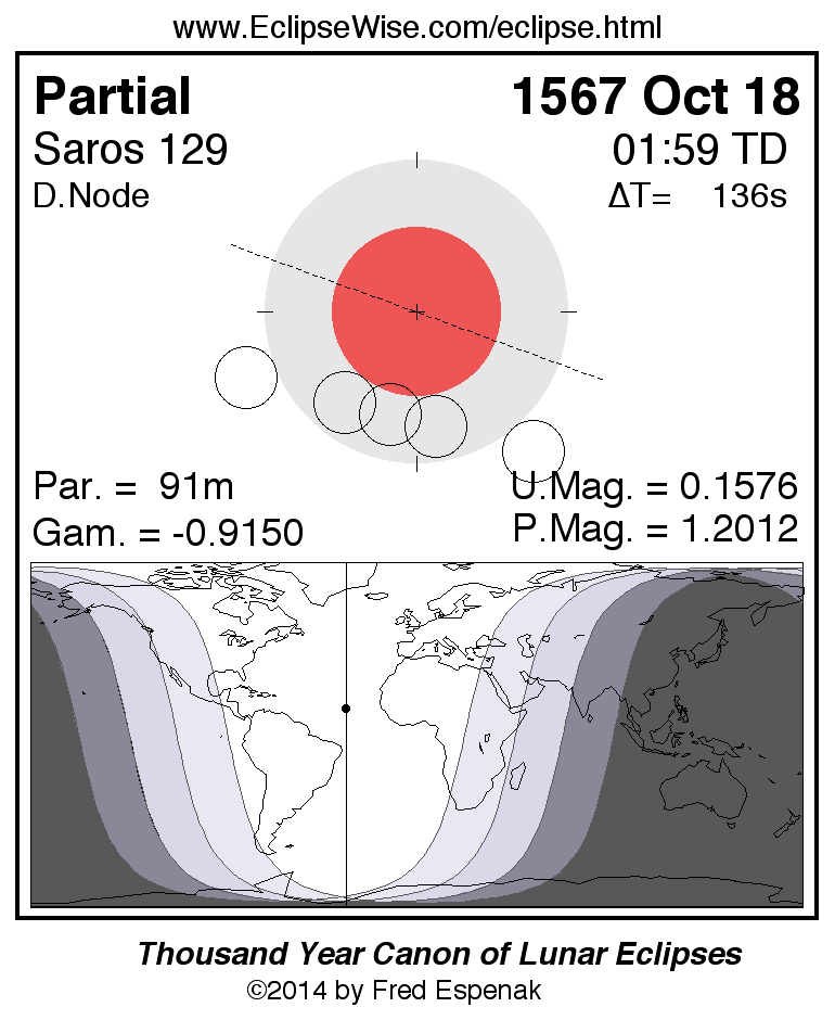 The partial lunar eclipse of 1567 Oct 18 is preceded two weeks earlier by a total solar eclipse on 1567 Oct 02.