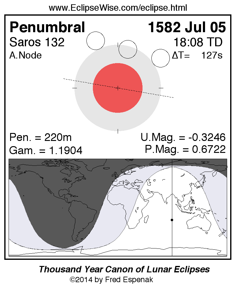 Penumbral Lunar Eclipse of 1582 Jul 05