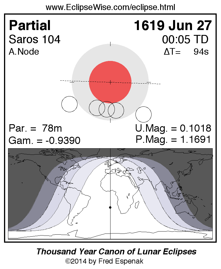 Partial Lunar Eclipse of 1619 Jun 27