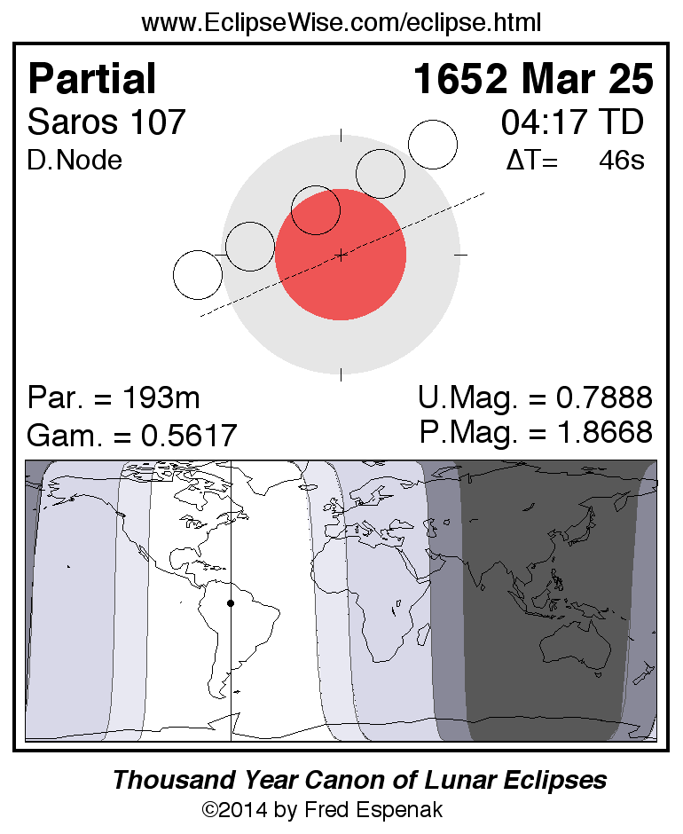 Partial Lunar Eclipse of 1652 Mar 25