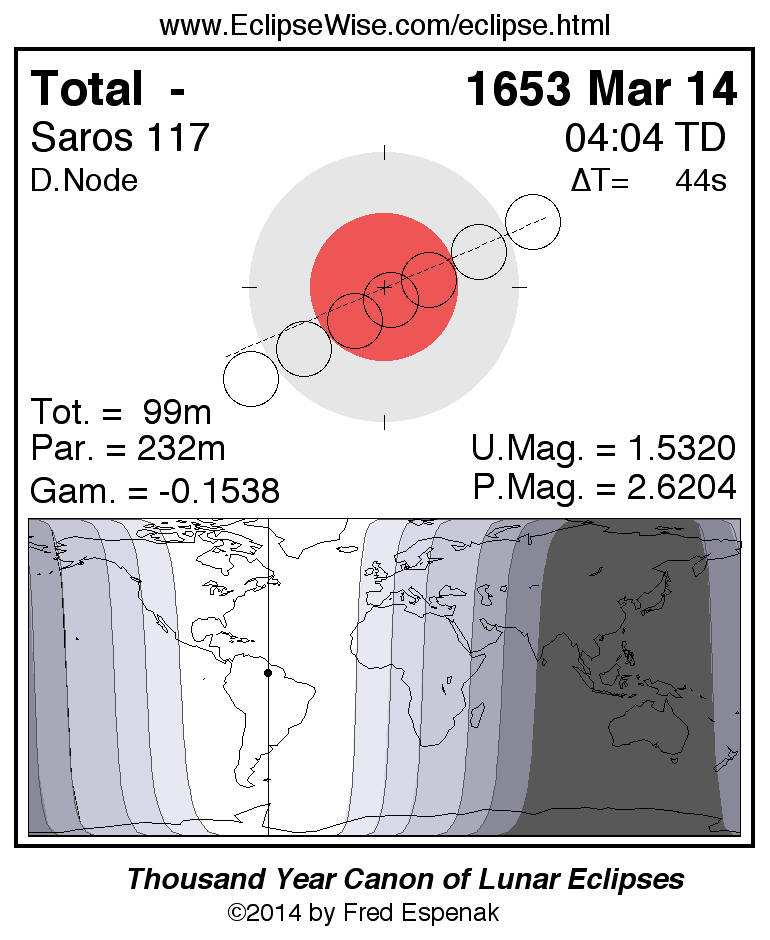 Total Lunar Eclipse of 1653 Mar 14