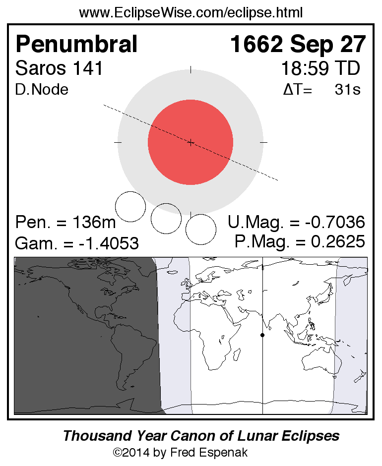 Penumbral Lunar Eclipse of 1662 Sep 27
