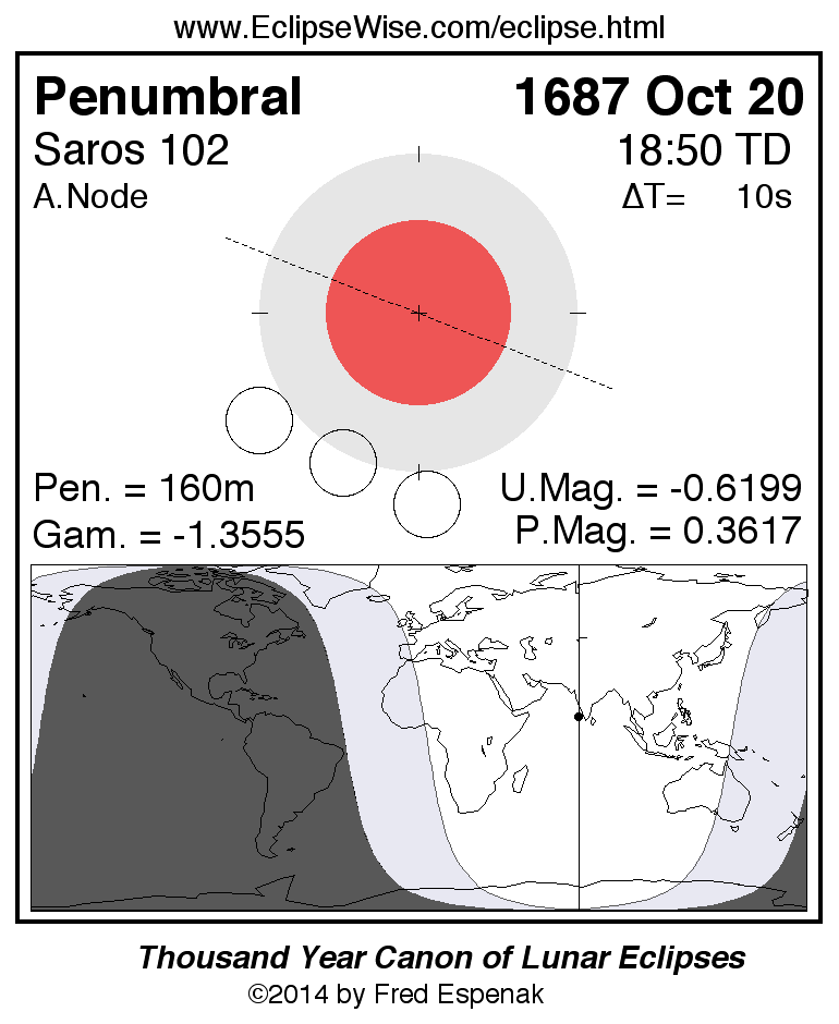Penumbral Lunar Eclipse of 1687 Oct 20
