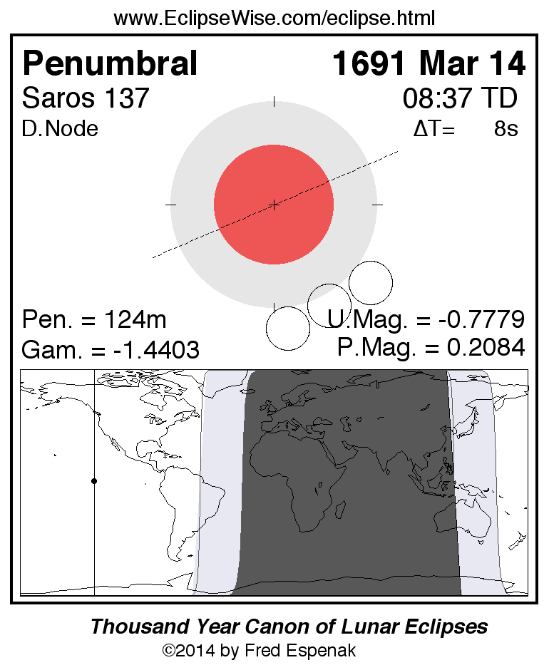 Penumbral Lunar Eclipse of 1691 Mar 14