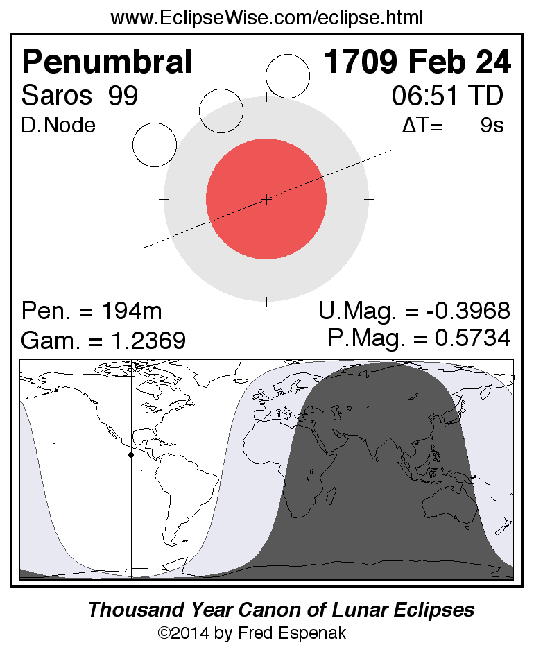 Penumbral Lunar Eclipse of 1709 Feb 24
