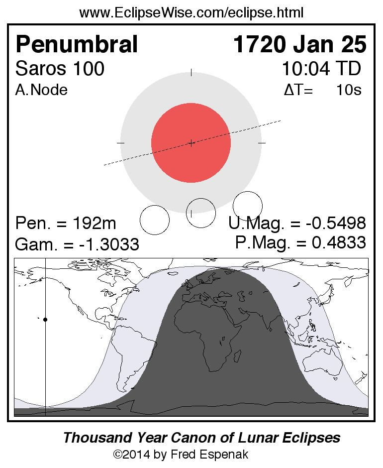 Penumbral Lunar Eclipse of 1720 Jan 25