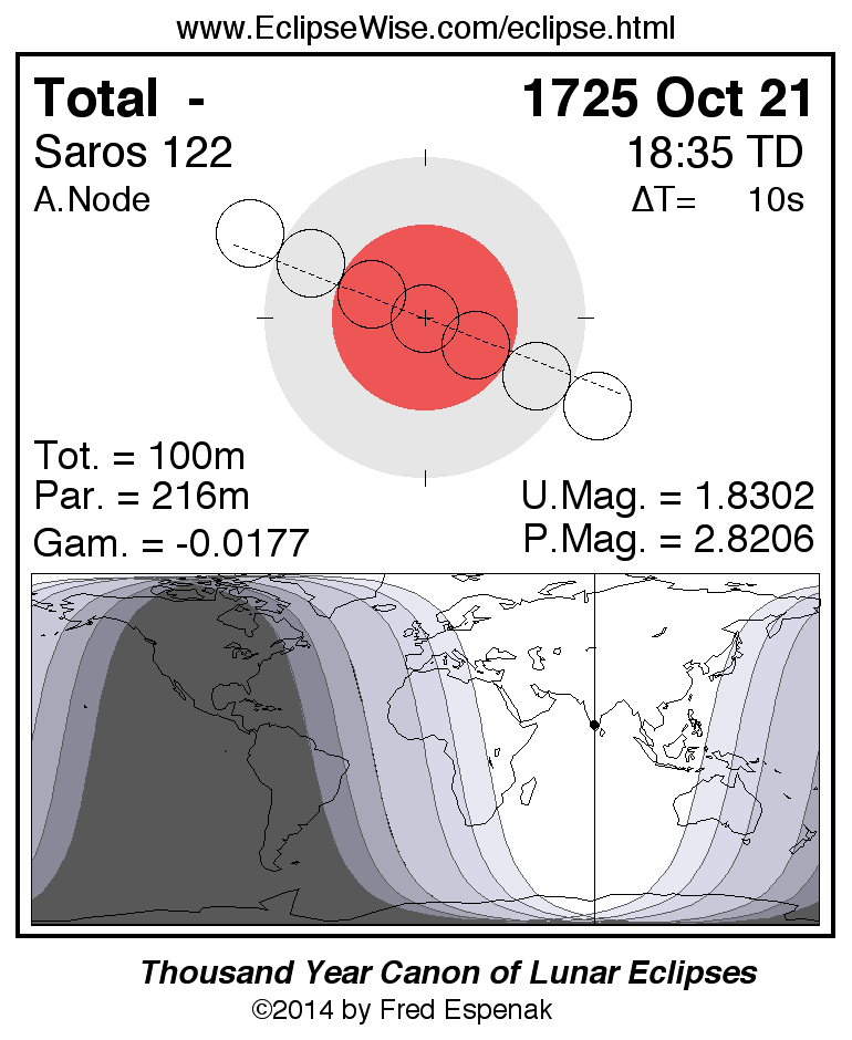 Total Lunar Eclipse of 1725 Oct 21