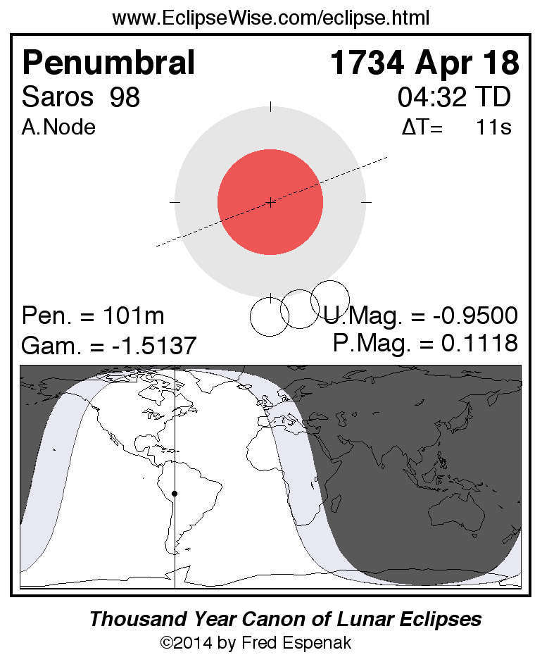 Penumbral Lunar Eclipse of 1734 Apr 18