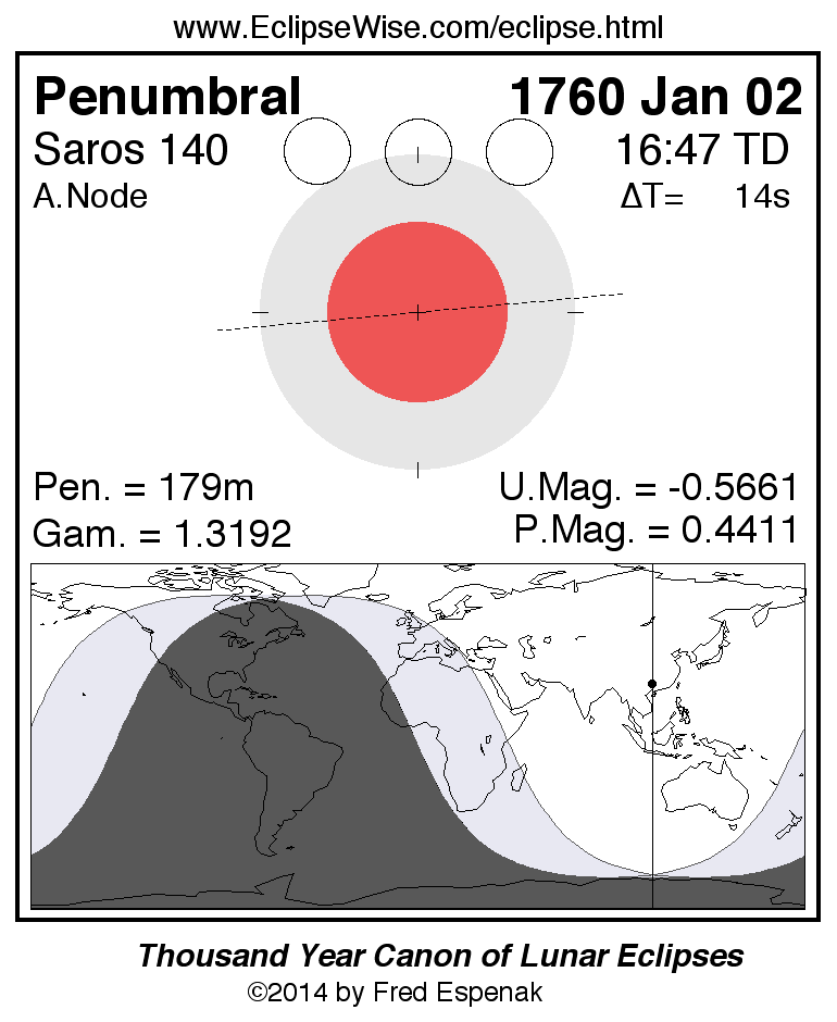 Penumbral Lunar Eclipse of 1760 Jan 02