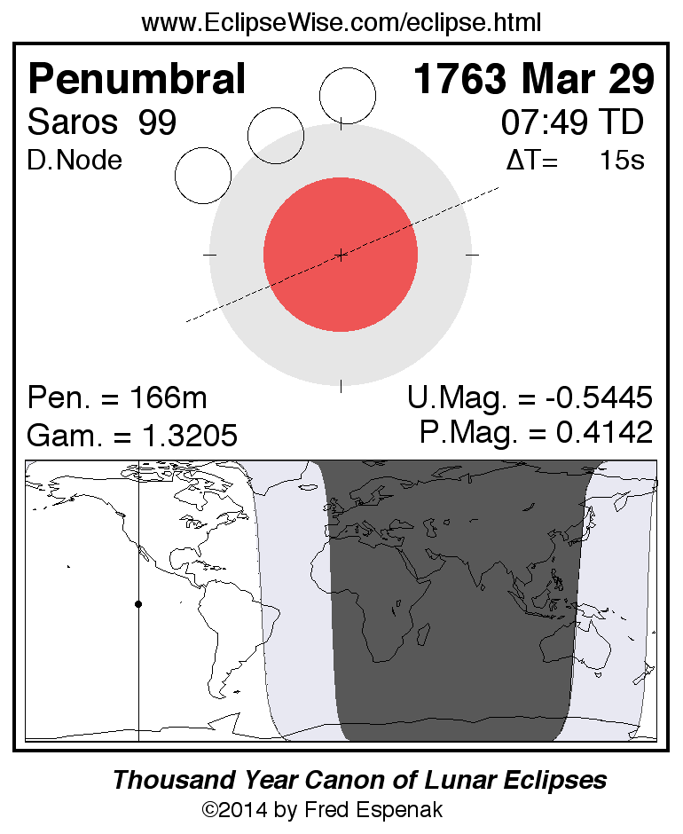 Penumbral Lunar Eclipse of 1763 Mar 29