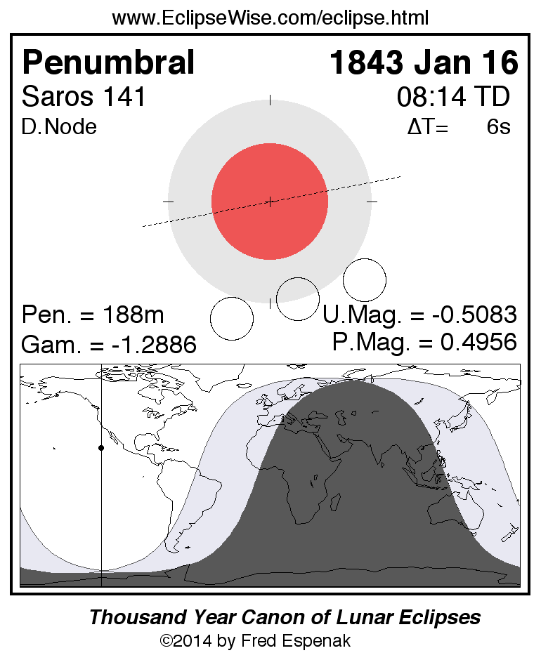 Penumbral Lunar Eclipse of 1843 Jan 16