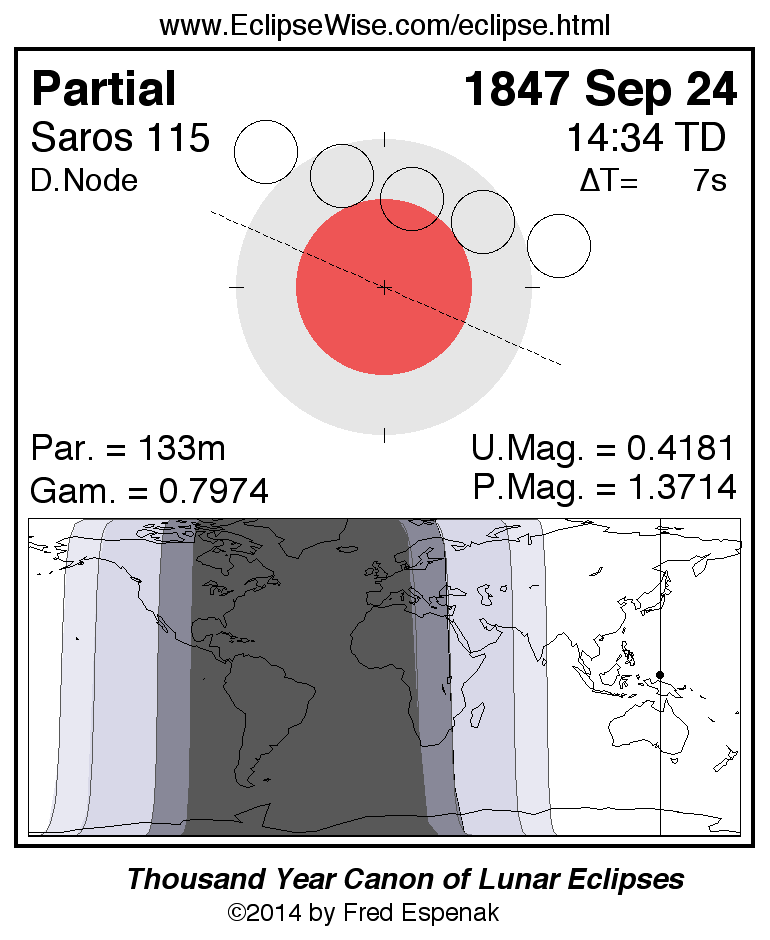 The instant of greatest eclipse takes place on 1847 Sep 24 at 14:33:44 TD (14:33:37 UT1).