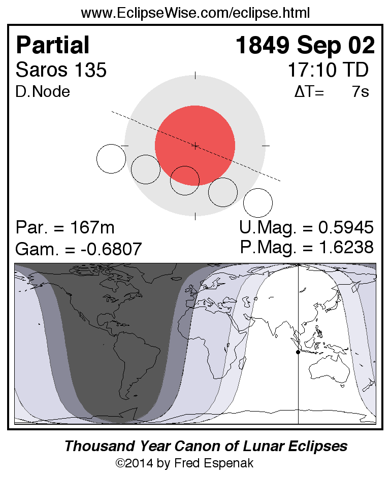 The partial lunar eclipse of 1849 Sep 02 is preceded two weeks earlier by a total solar eclipse on 1849 Aug 18.