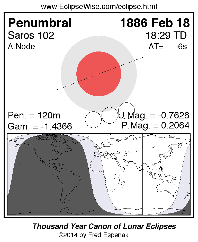 Penumbral Lunar Eclipse of 1886 Feb 18