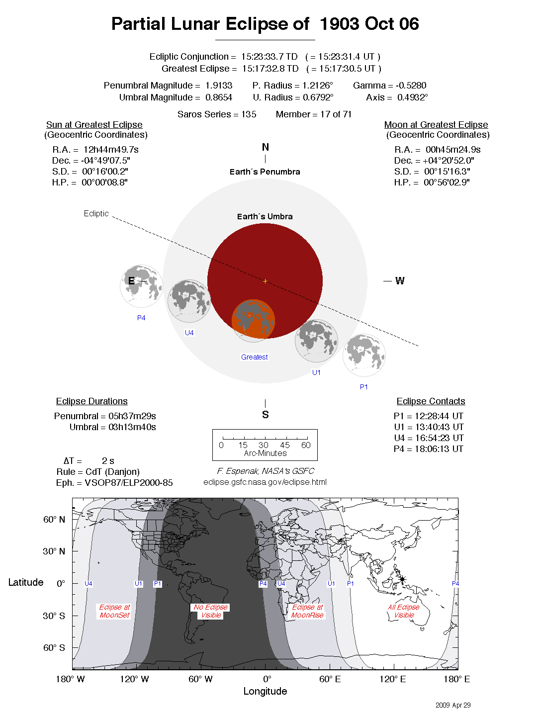 The tables below contain detailed predictions and additional information on the Partial Lunar Eclipse of 1903 Oct 06 .