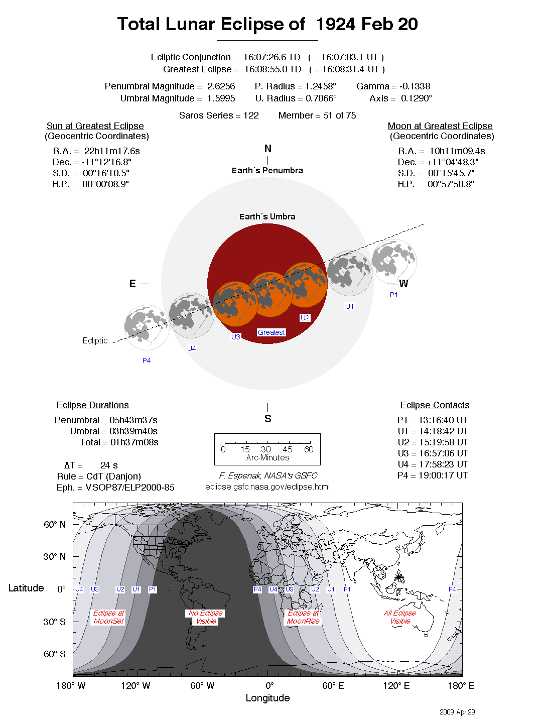 The tables below contain detailed predictions and additional information on the Total Lunar Eclipse of 1924 Feb 20 .