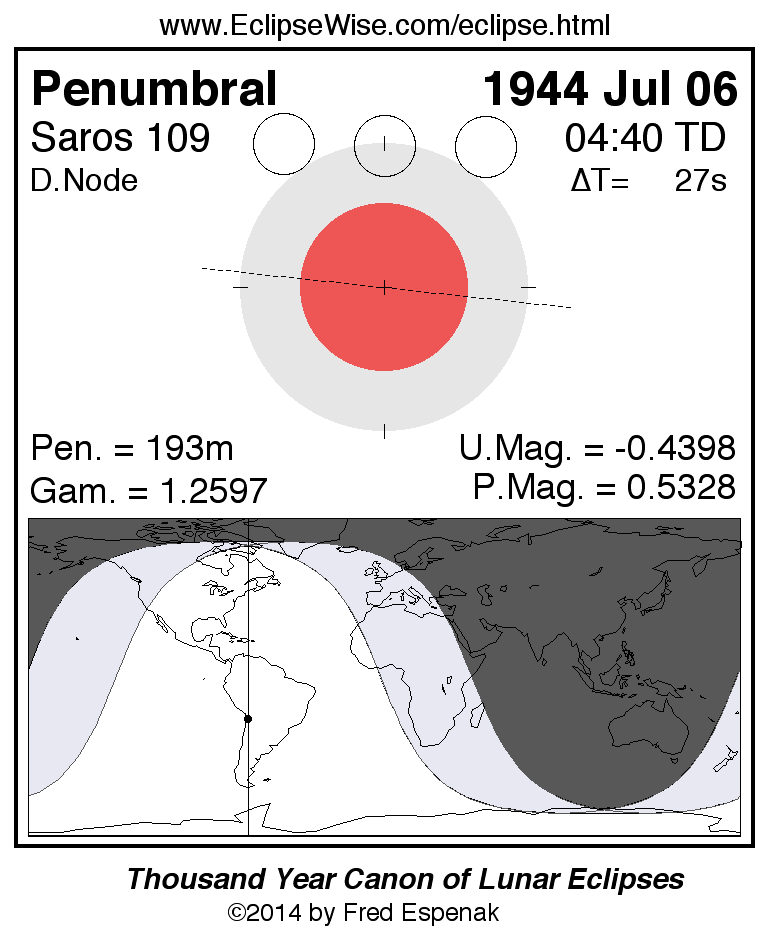 Penumbral Lunar Eclipse of 1944 Jul 06
