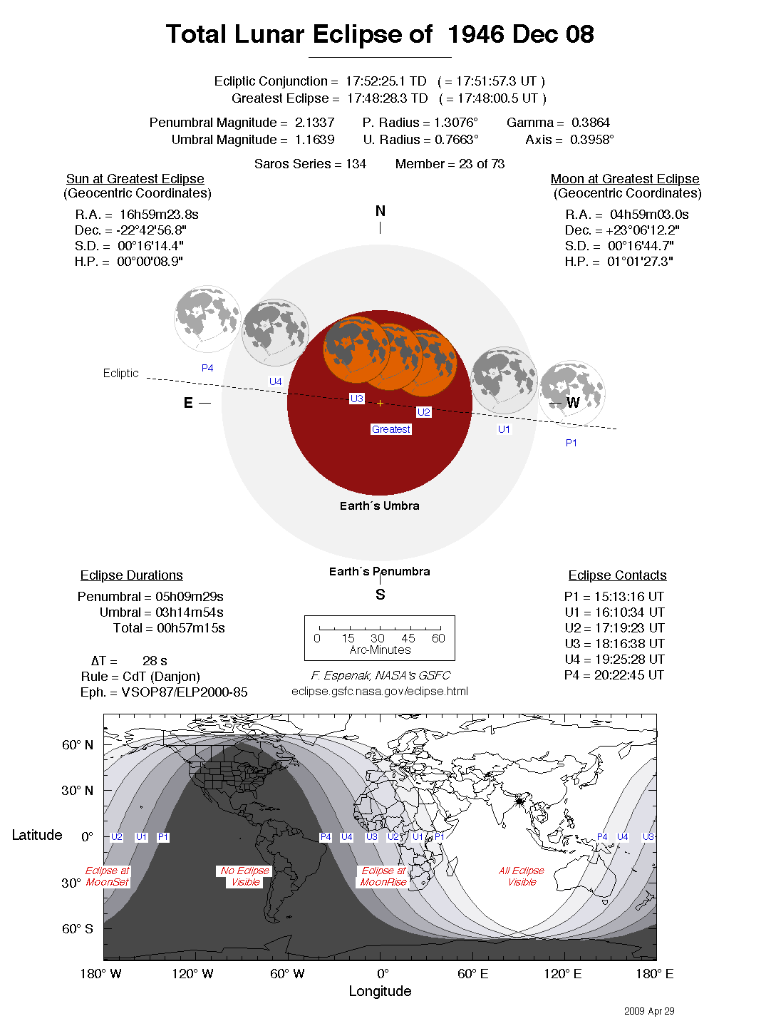 The tables below contain detailed predictions and additional information on the Total Lunar Eclipse of 1946 Dec 08 .