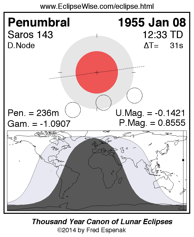 Penumbral Lunar Eclipse of 1955 Jan 08