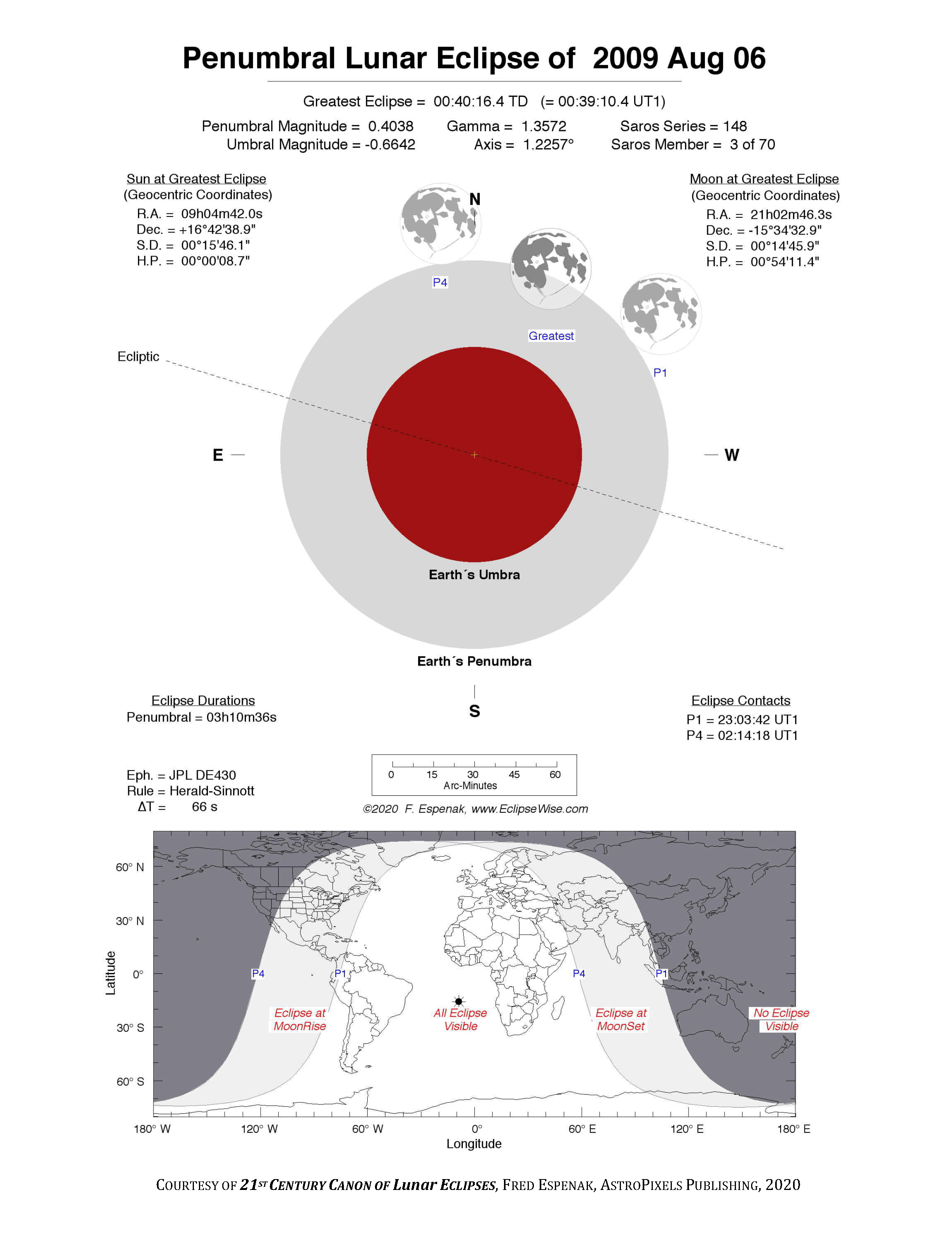 - Detailed Lunar Eclipse Figure - eclipse geometry diagram and map of eclipse visibility (Key to Figure)