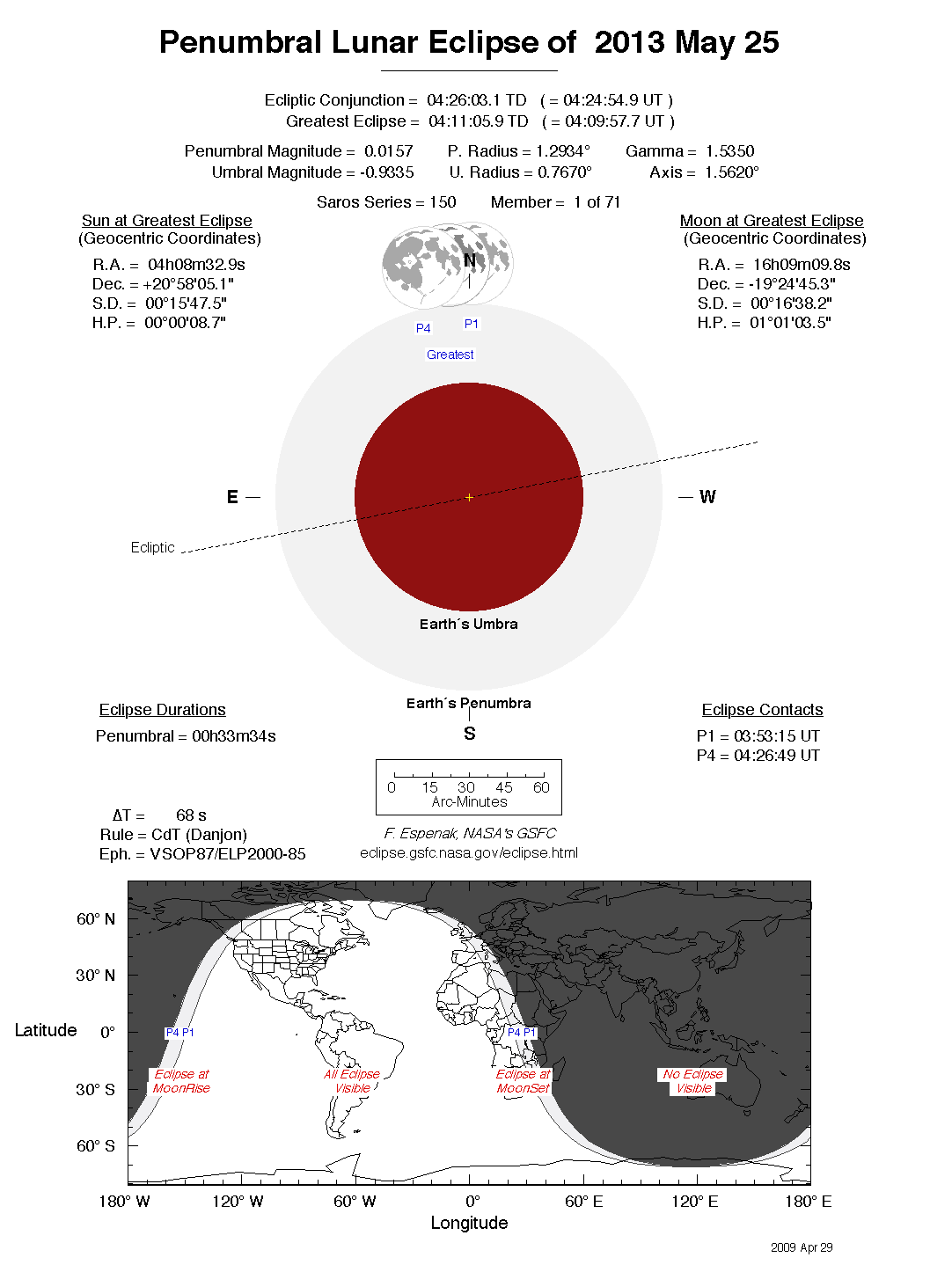 The Penumbral Lunar Eclipse of 2013 May 25 is visible from the following geographic regions:
