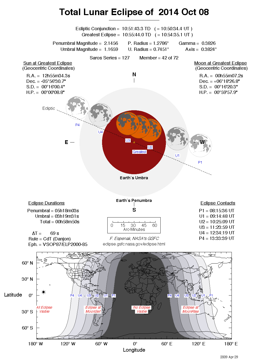 - Detailed Lunar Eclipse Figure - eclipse geometry diagram and map of eclipse visibility (Key to Figure)