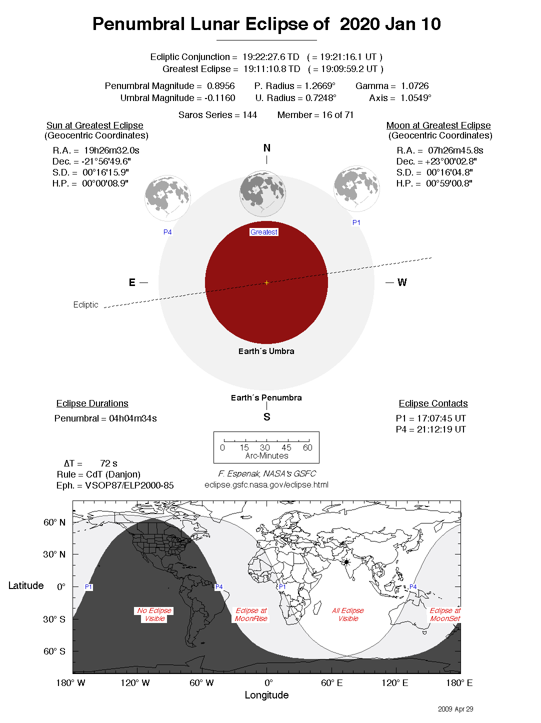 - Detailed Lunar Eclipse Figure - eclipse geometry diagram and map of eclipse visibility (Key to Figure)
