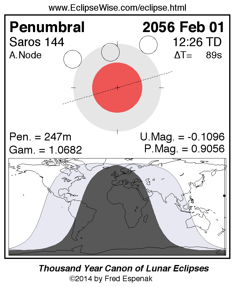 Penumbral Lunar Eclipse of 2056 Feb 01