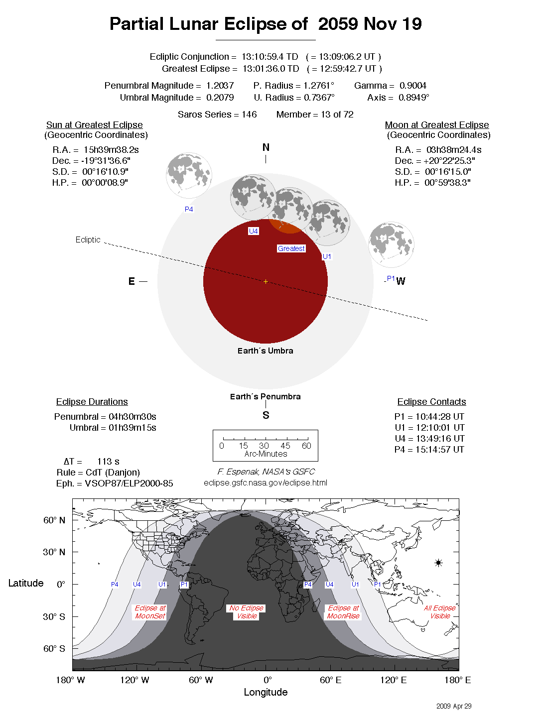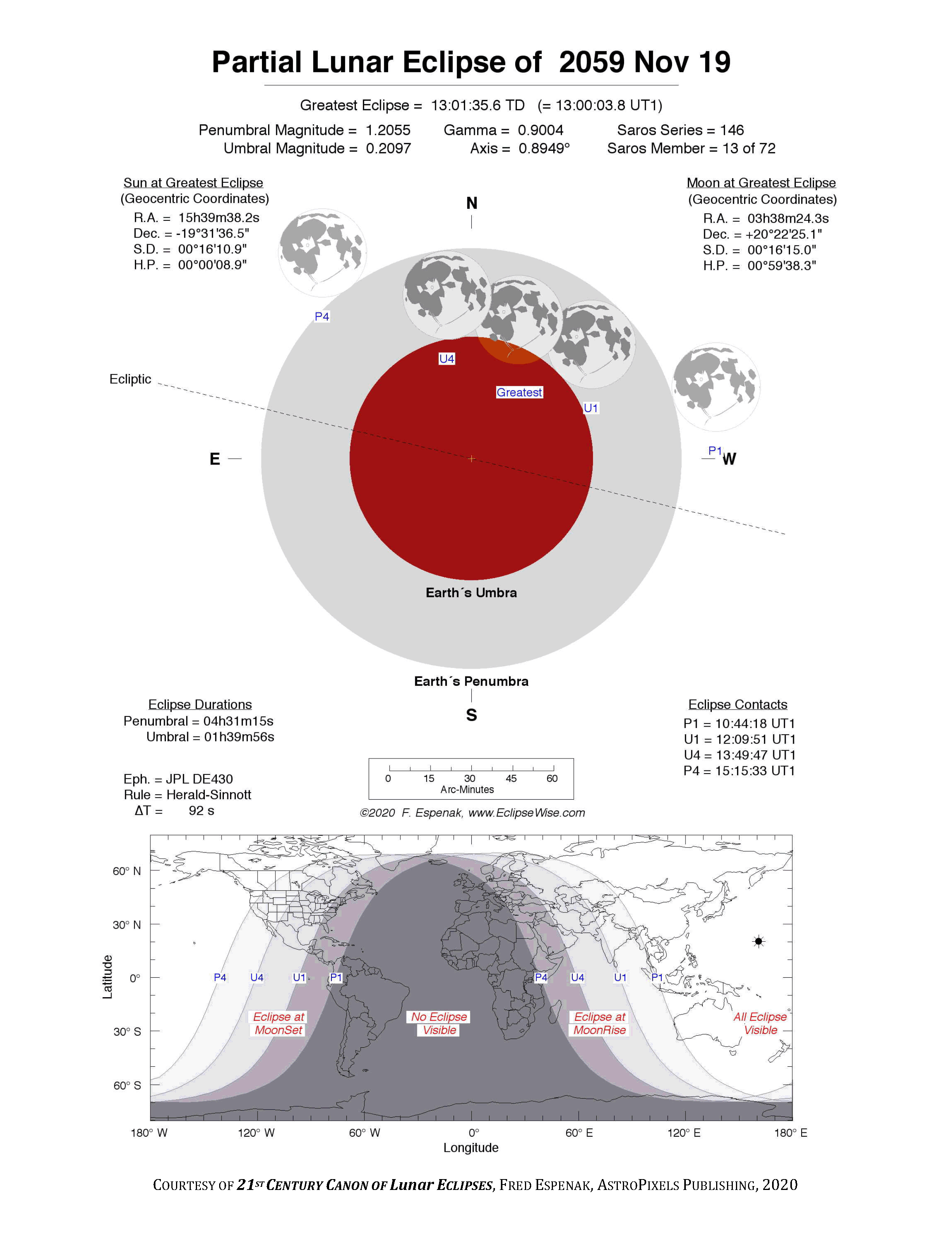 The tables below contain detailed predictions and additional information on the Partial Lunar Eclipse of 2059 Nov 19 .