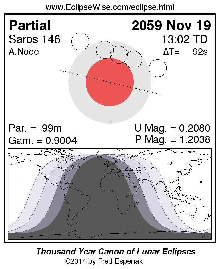 The partial lunar eclipse of 2059 Nov 19 is preceded two weeks earlier by a annular solar eclipse on 2059 Nov 05.