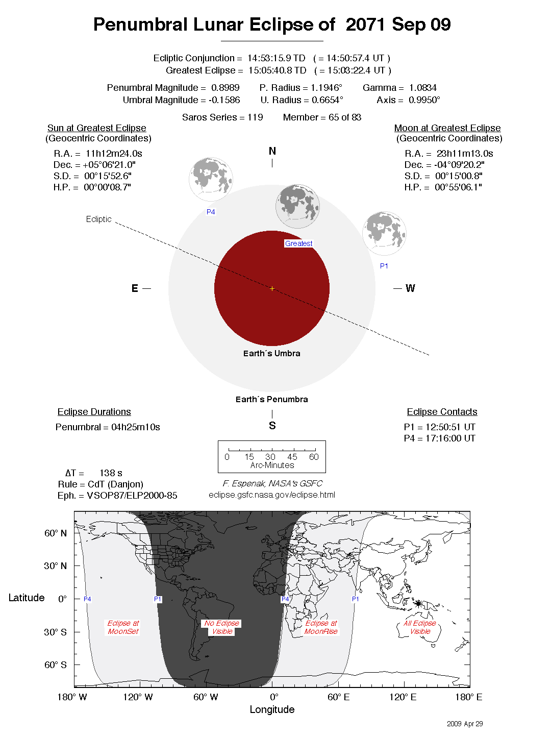 The tables below contain detailed predictions and additional information on the Penumbral Lunar Eclipse of 2071 Sep 09 .