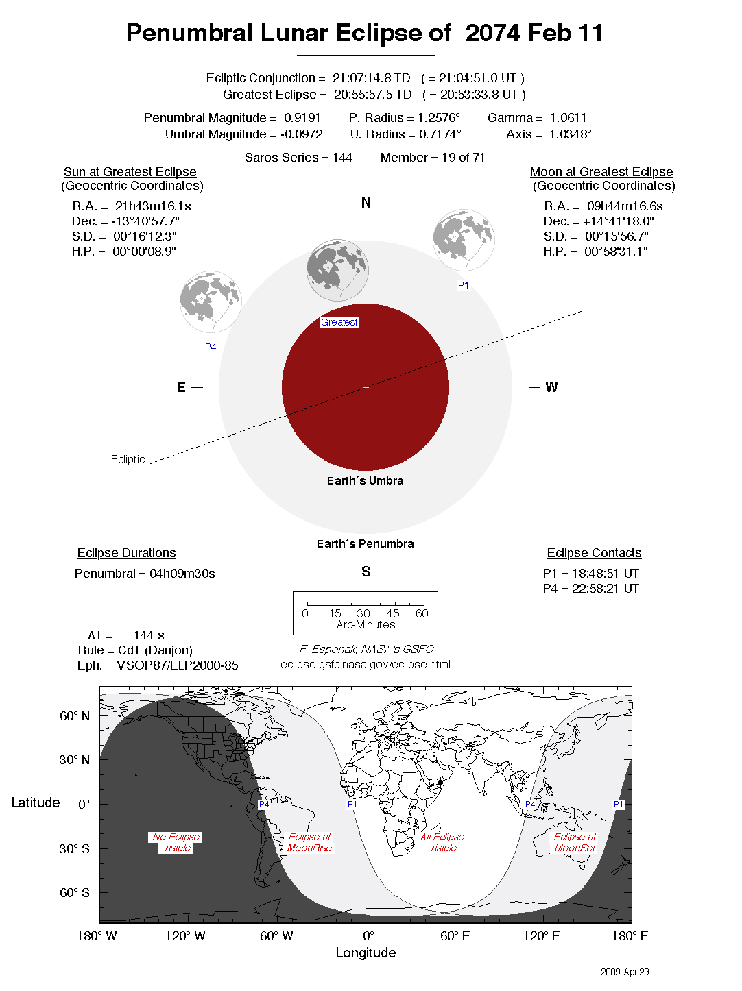 The tables below contain detailed predictions and additional information on the Penumbral Lunar Eclipse of 2074 Feb 11 .