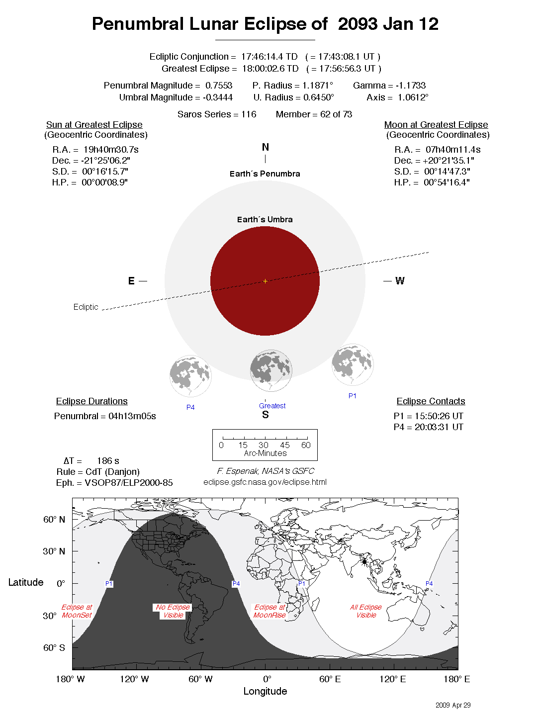 The tables below contain detailed predictions and additional information on the Penumbral Lunar Eclipse of 2093 Jan 12 .