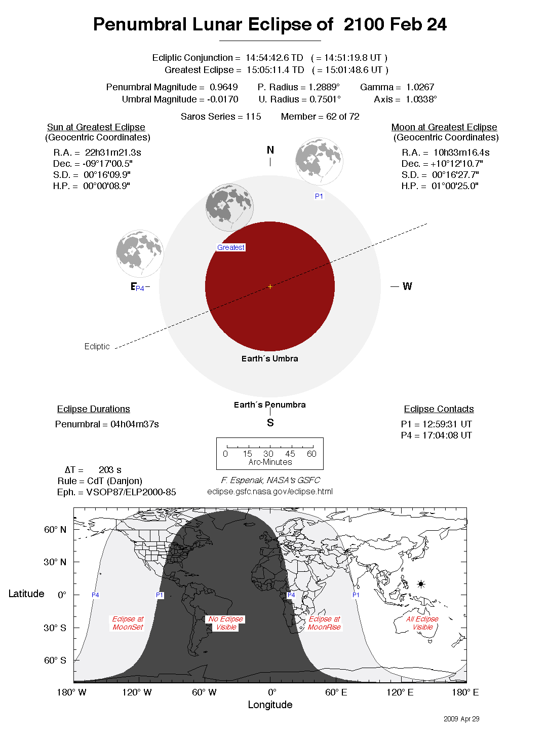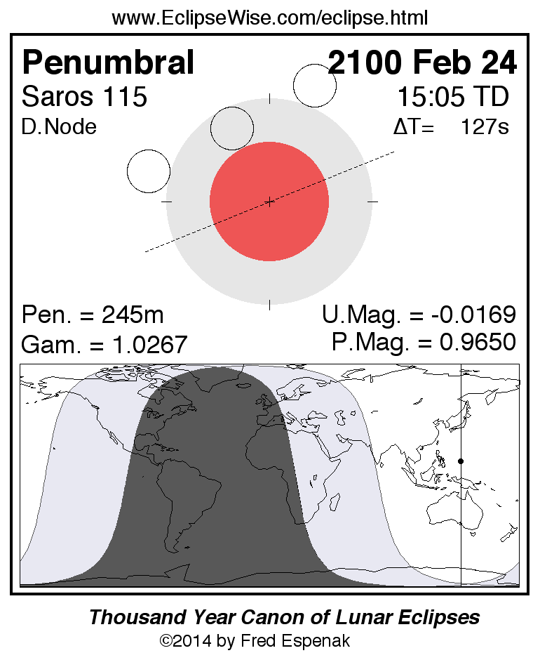 The tables below contain detailed predictions and additional information on the Penumbral Lunar Eclipse of 2100 Feb 24 .