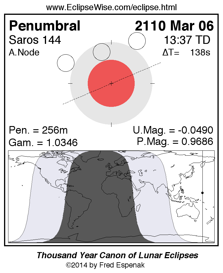 Penumbral Lunar Eclipse of 2110 Mar 06