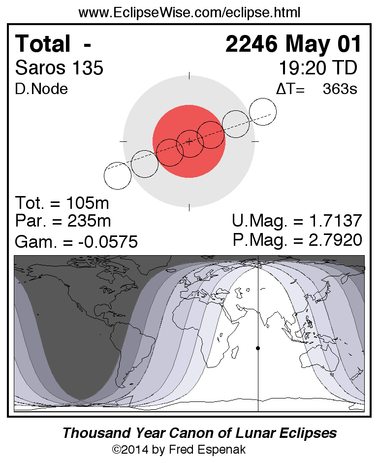 The total lunar eclipse of 2246 May 01 is preceded two weeks earlier by a partial solar eclipse on 2246 Apr 16,