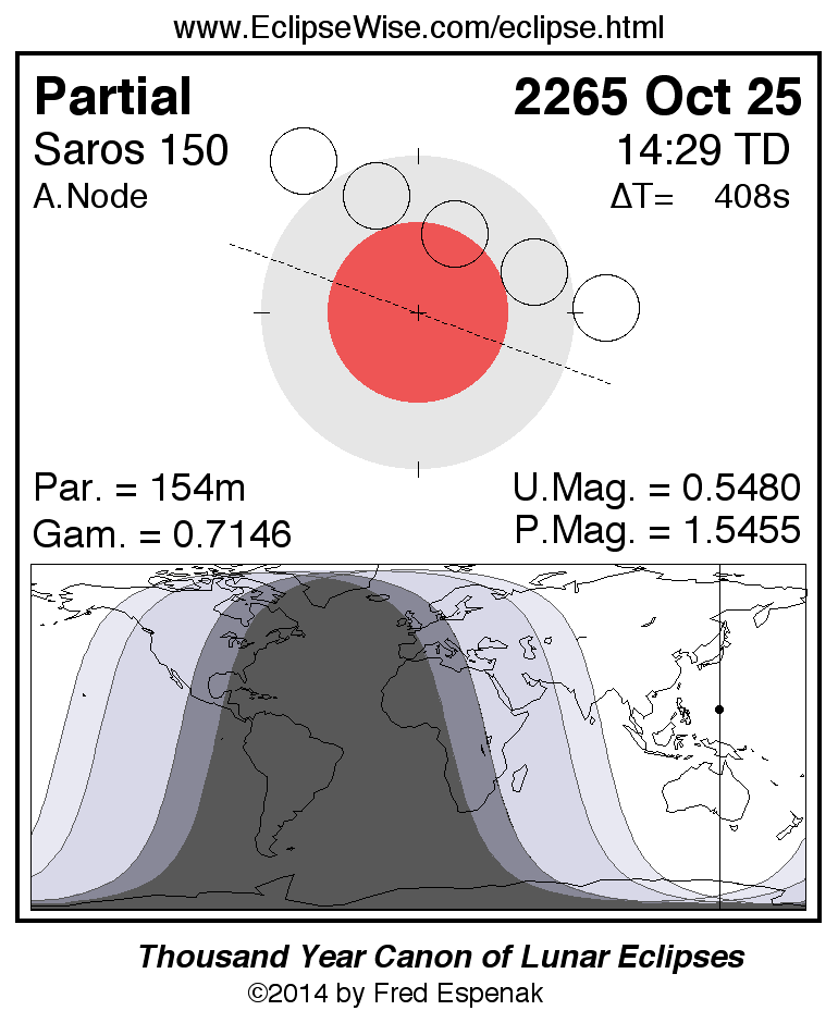 The instant of greatest eclipse takes place on 2265 Oct 25 at 14:28:58 TD (14:22:11 UT1).
