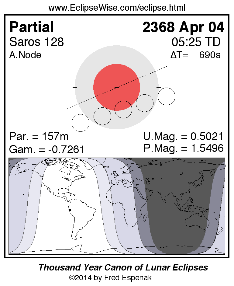 The instant of greatest eclipse takes place on 2368 Apr 04 at 05:25:30 TD (05:13:60 UT1).