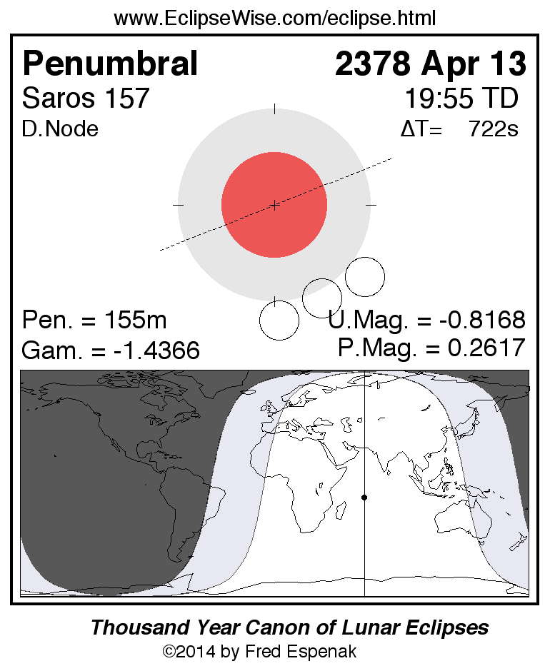 The penumbral lunar eclipse of 2378 Apr 13 is preceded two weeks earlier by a total solar eclipse on 2378 Mar 29.