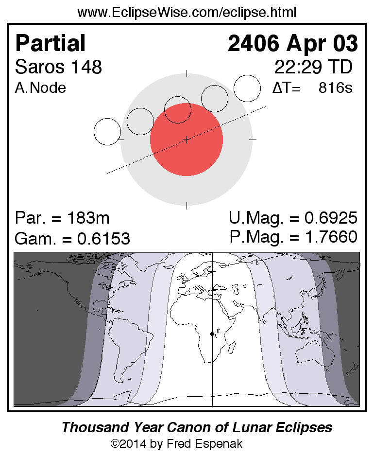 The instant of greatest eclipse takes place on 2406 Apr 03 at 22:29:29 TD (22:15:53 UT1).