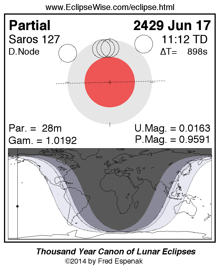The instant of greatest eclipse takes place on 2429 Jun 17 at 11:11:33 TD (10:56:34 UT1).