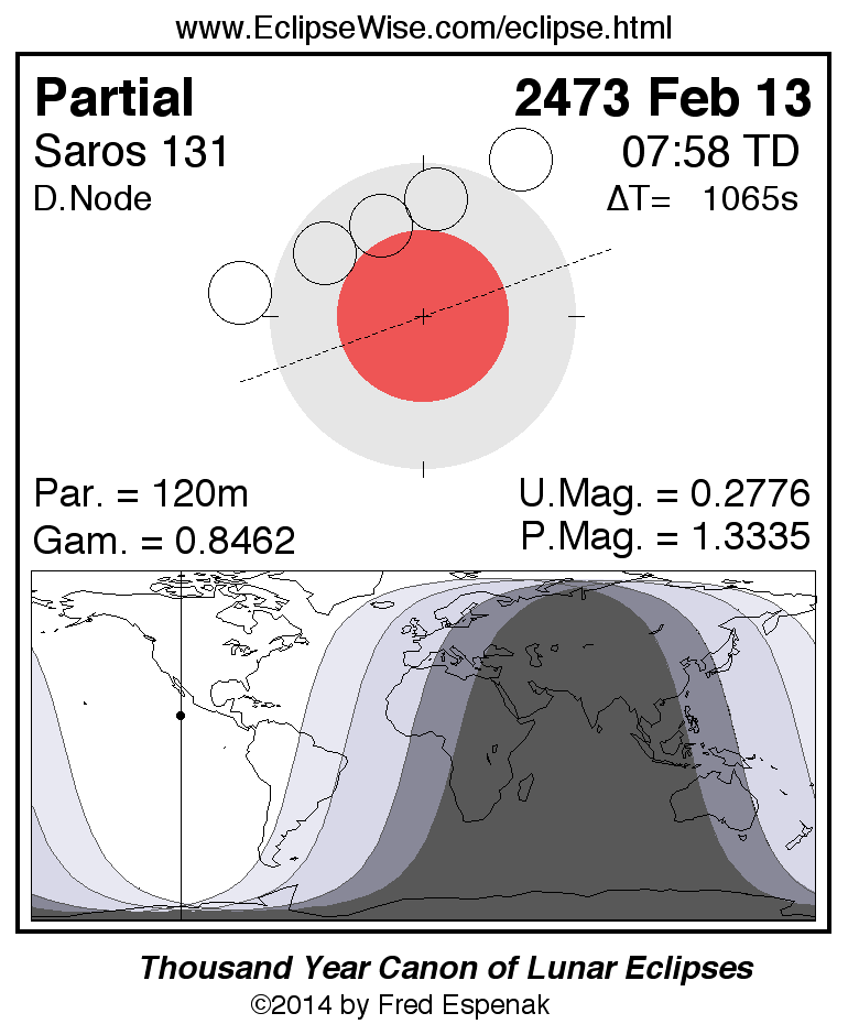 The instant of greatest eclipse takes place on 2473 Feb 13 at 07:57:34 TD (07:39:50 UT1).