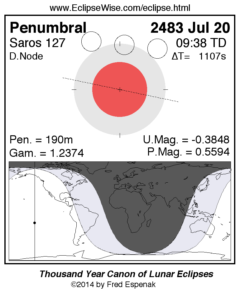 Another lunar eclipse occurs one synodic month after the 2483 Jul 20 eclipse. It is the penumbral lunar eclipse of 2483 Aug 18.