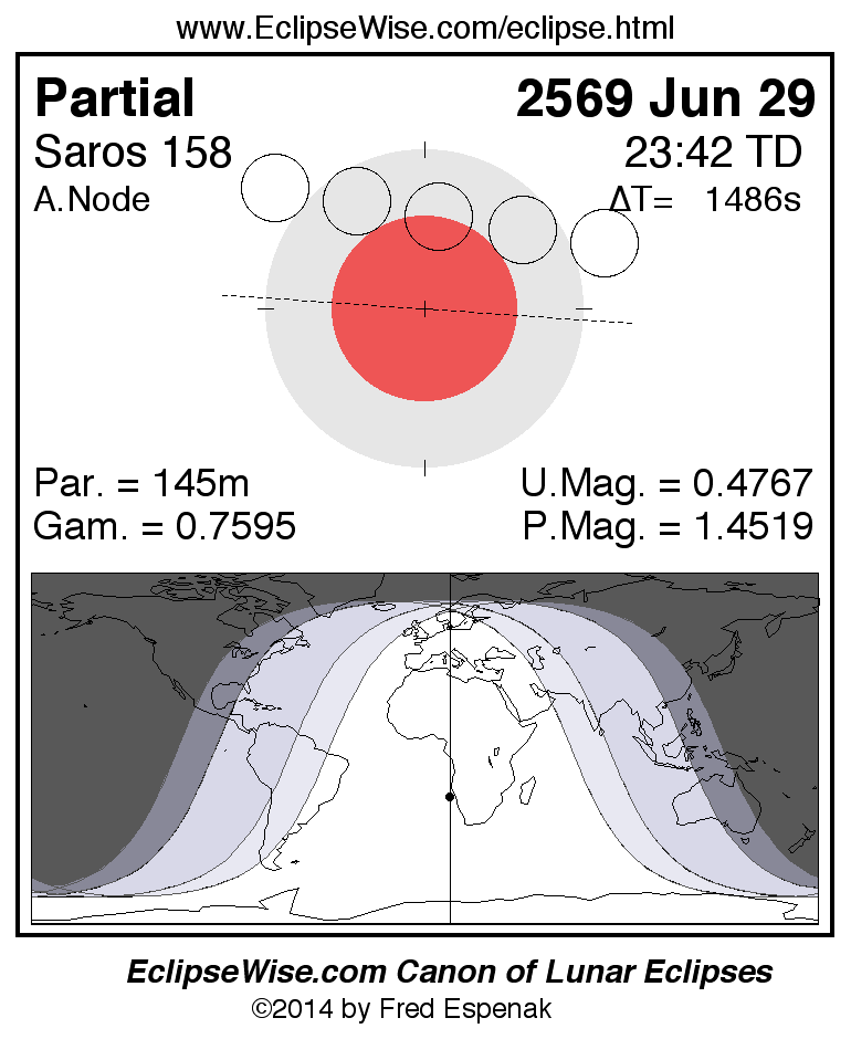 The partial lunar eclipse of 2569 Jun 29 is preceded two weeks earlier by a annular solar eclipse on 2569 Jun 15.
