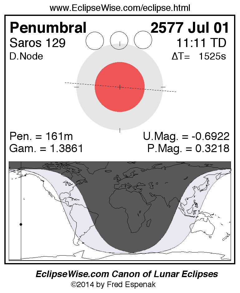 The instant of greatest eclipse takes place on 2577 Jul 01 at 11:11:06 TD (10:45:41 UT1).