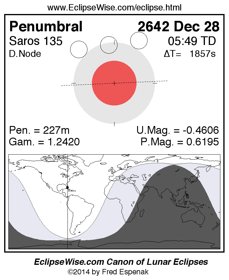 The instant of greatest eclipse takes place on 2642 Dec 28 at 05:49:27 TD (05:18:30 UT1).