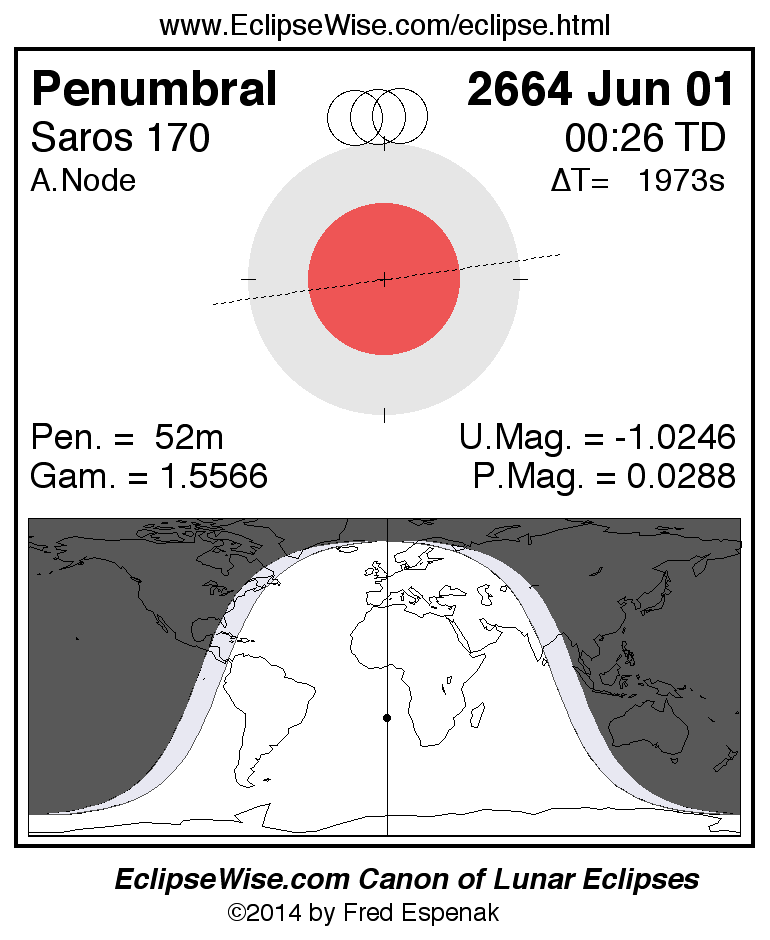 Another lunar eclipse occurs one synodic month before the 2664 Jun 01 eclipse. It is the penumbral lunar eclipse of 2664 May 02.