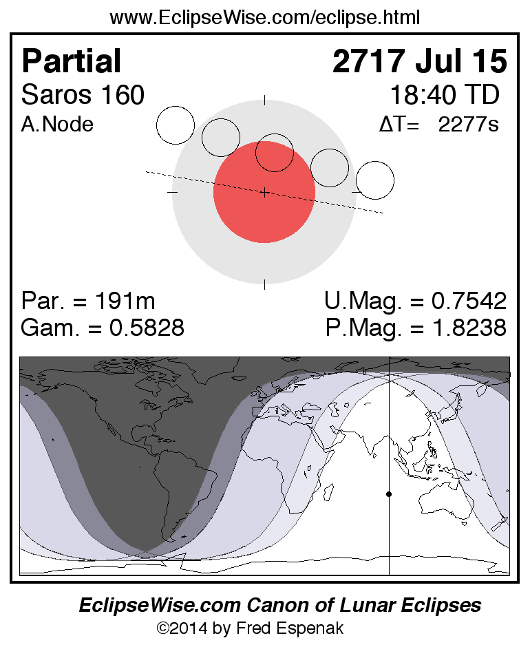 The instant of greatest eclipse takes place on 2717 Jul 15 at 18:39:38 TD (18:01:41 UT1).